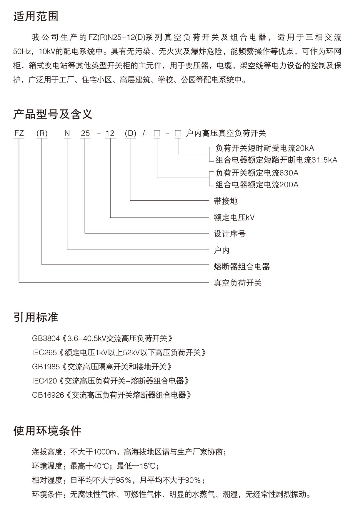FZ(R)N25-12D/T系列戶內高壓交流真空負荷開關-熔斷器組合電器