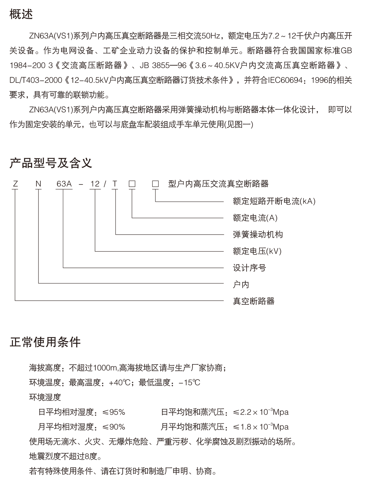 ZN63A(VS1)-12系列戶內高壓交流真空斷路器